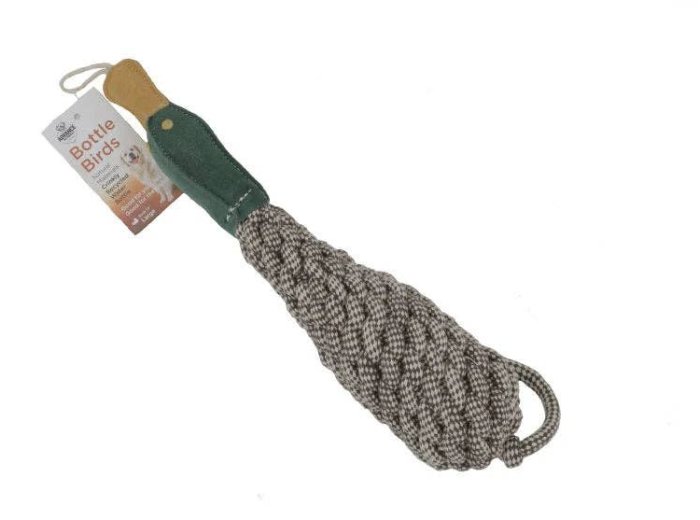 Varying size bird toys made with thick cotton rope and triple stitching. Squeaker for noise-lovers and receycled plastic bottles for a crinkle are a great exampled of eco-friendly, pet-safe toys. Loved by dogs big and small. Super durable with a wide variety of options.