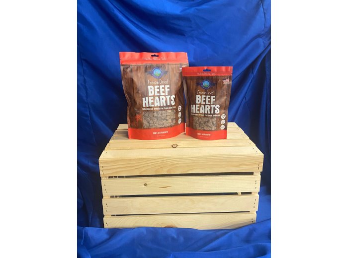 Made from raw, diced beef hearts, with nothing added, and nothing taken giving it strong flavor.