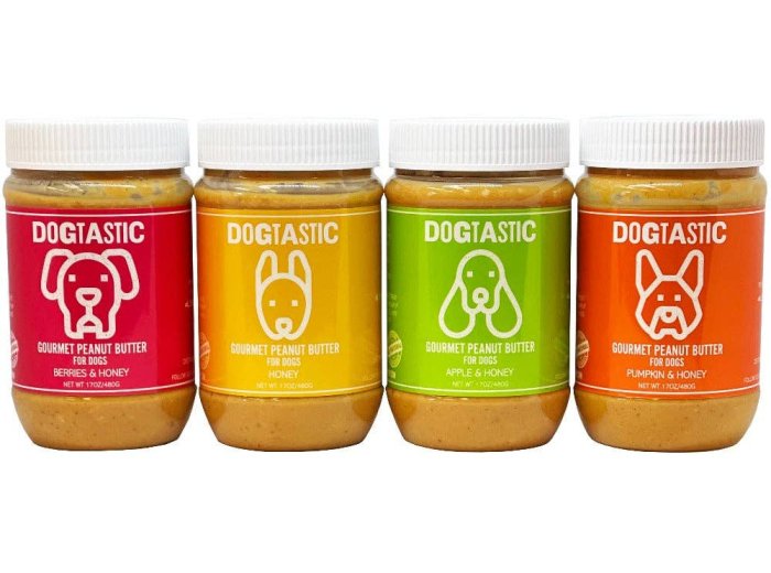 - Spread Dogtastic Peanut Butter into SodaPup emat lick mats, treat dispensers and on dog treats.