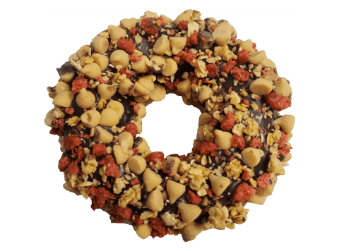 Gourmet donut: carob, peanut butter, bacon, crunchy, delicious treat!
