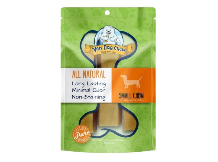 Yeti Dog Chew is an all natural and healthy dog chew made of hardened Cow/Yak milk cheese. These organic chews are not only good for dogs of all sizes and ages, the product doesn't stain, splinter, and has minimal odor. The hard and long-lasting chew is the perfect treat to keep your dog happy and occupied for a while in a safe and natural way.